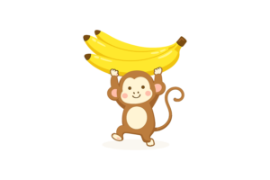 [年賀状、新年、お正月、申、さる、猿、動物、バナナ、果物、干支、十二支]