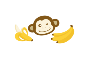 座ってバナナを食べるお猿さんのイラストです。シンプルなイラストなイラストですので、様々なシーンでぜひご活用ください。